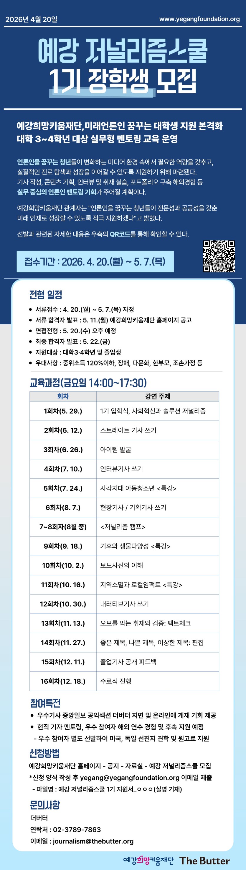 • 신청방법: 신청양식 작성 후 yegang@yegangfoundation.org 이메일 제출
